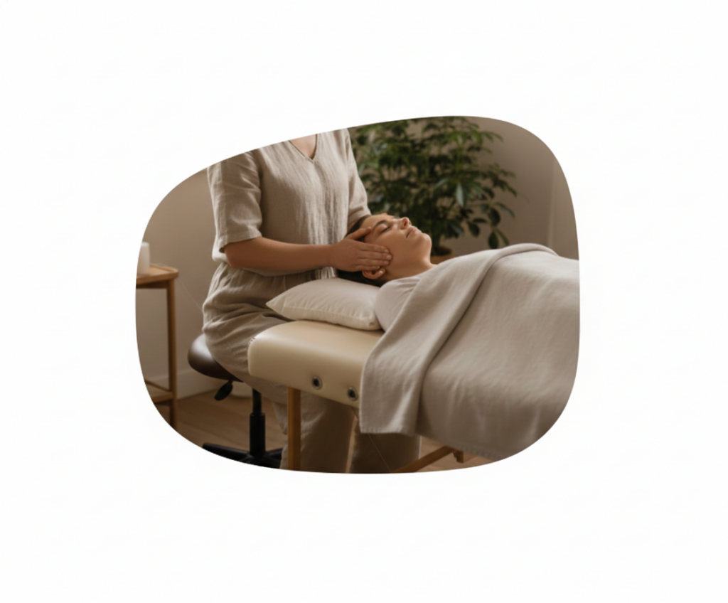 La séance se déroule avec de la musique douce, créant un espace harmonieux et sacré où vous pouvez enfin vous relâcher, respirer, vous déposer.